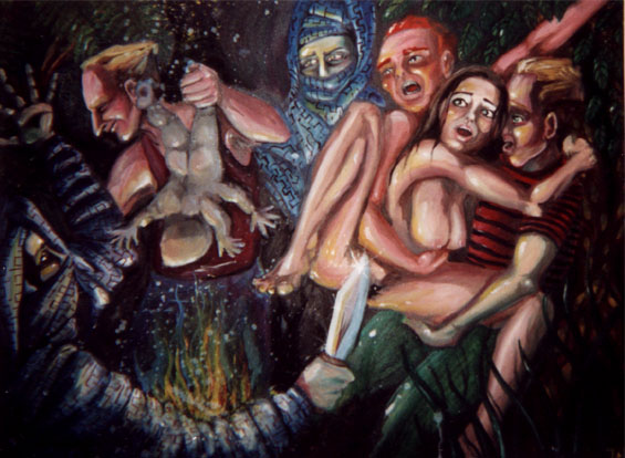 Finished in 1997, it is my second ever oil painting and its about 4x3 feet on canvas. My art teachers in my slacker school encouraged us NOT to paint in oils, I can only guess because its been the global standard for artist for 2000 years.