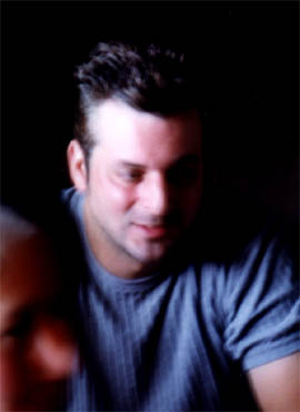 Blurry photo of Dave Grant inbetween takes of PGC:TECN at Broadside. 1999