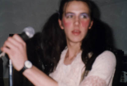Jeff at 4 peace house party dressed like woman. 1991.