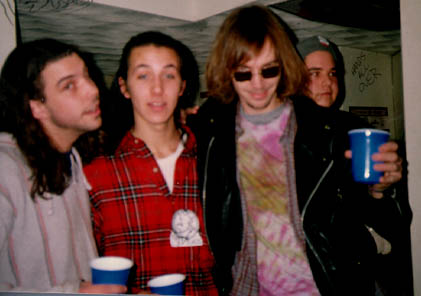 Craig, Jef and Matt of Overman enjoying some beer at the Four Peace party. The Overpat is in the background.