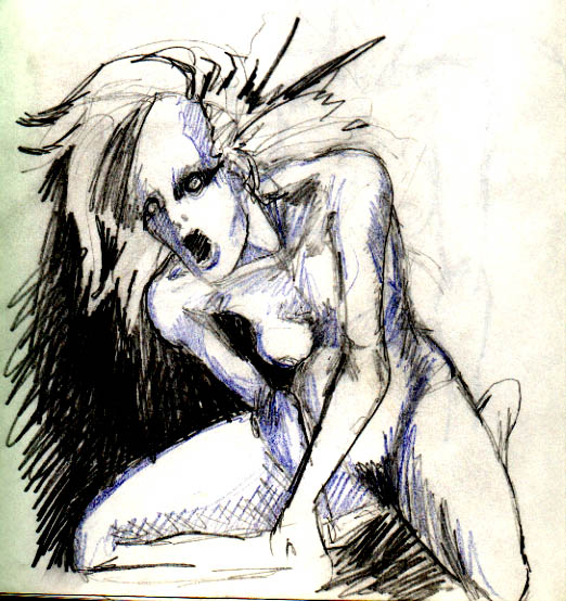 Woman bending over in pain - painting