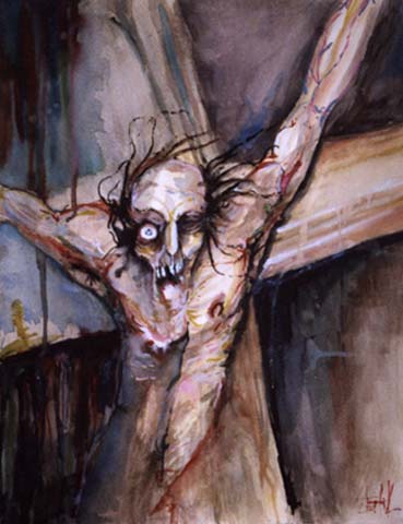 Part of a seven painting series about Jesus. My art teacher at the time told me it was good, but to put it away and never look at it again.