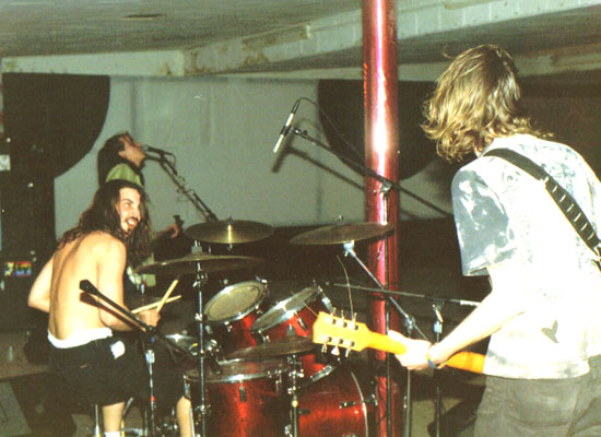 Overman playing at the K-club in 1991 or 1992. A pissed Jesus sat in on the drums.
