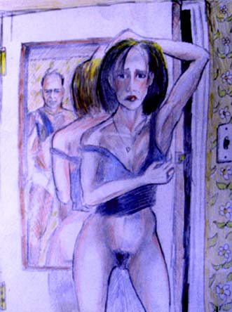 Another horny sketch, probably finished in 1996. This one has an angry husband waving a nervous wife's panties. Any excuse to show a woman without her panties.