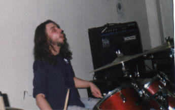 Craig Verity playing drums, probably in 1991, probably with Overman.